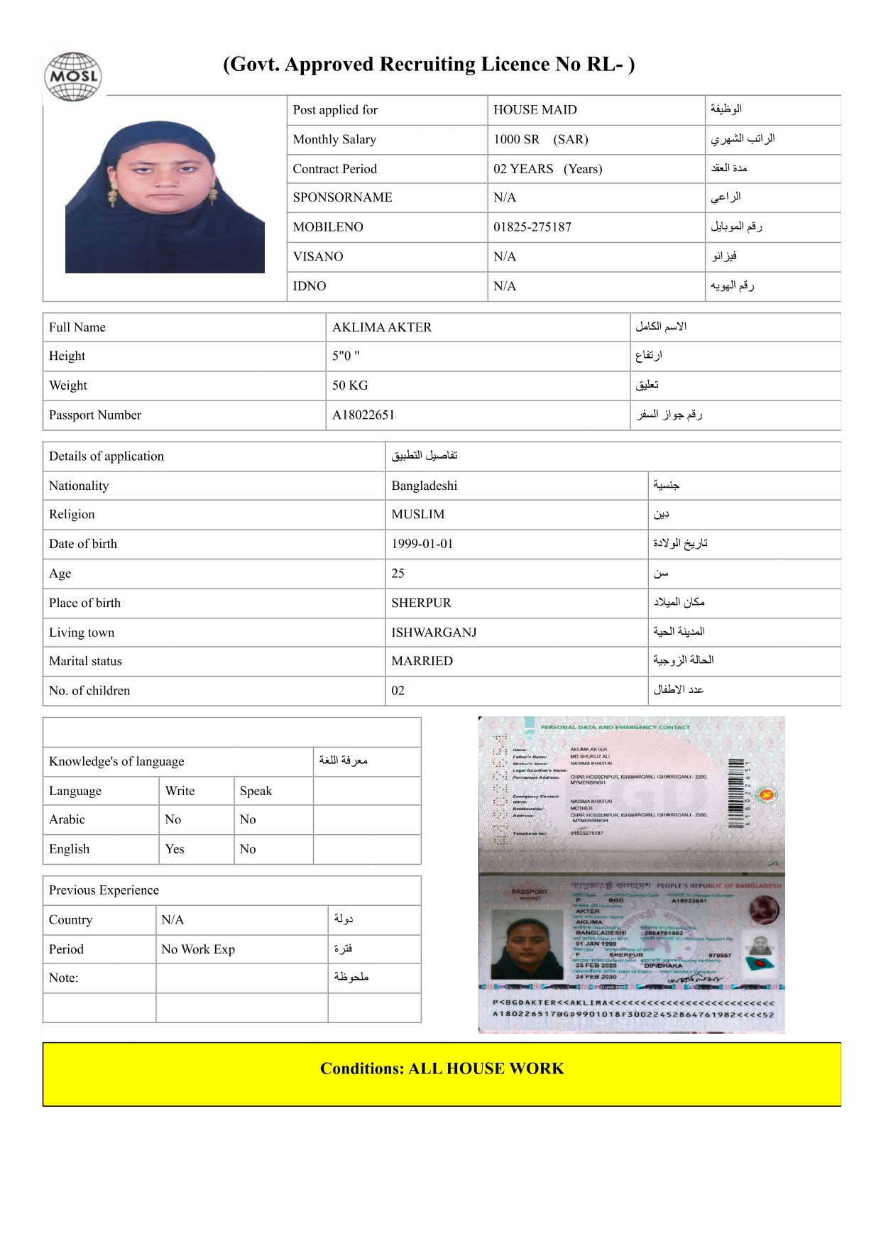 عاملة منزلية