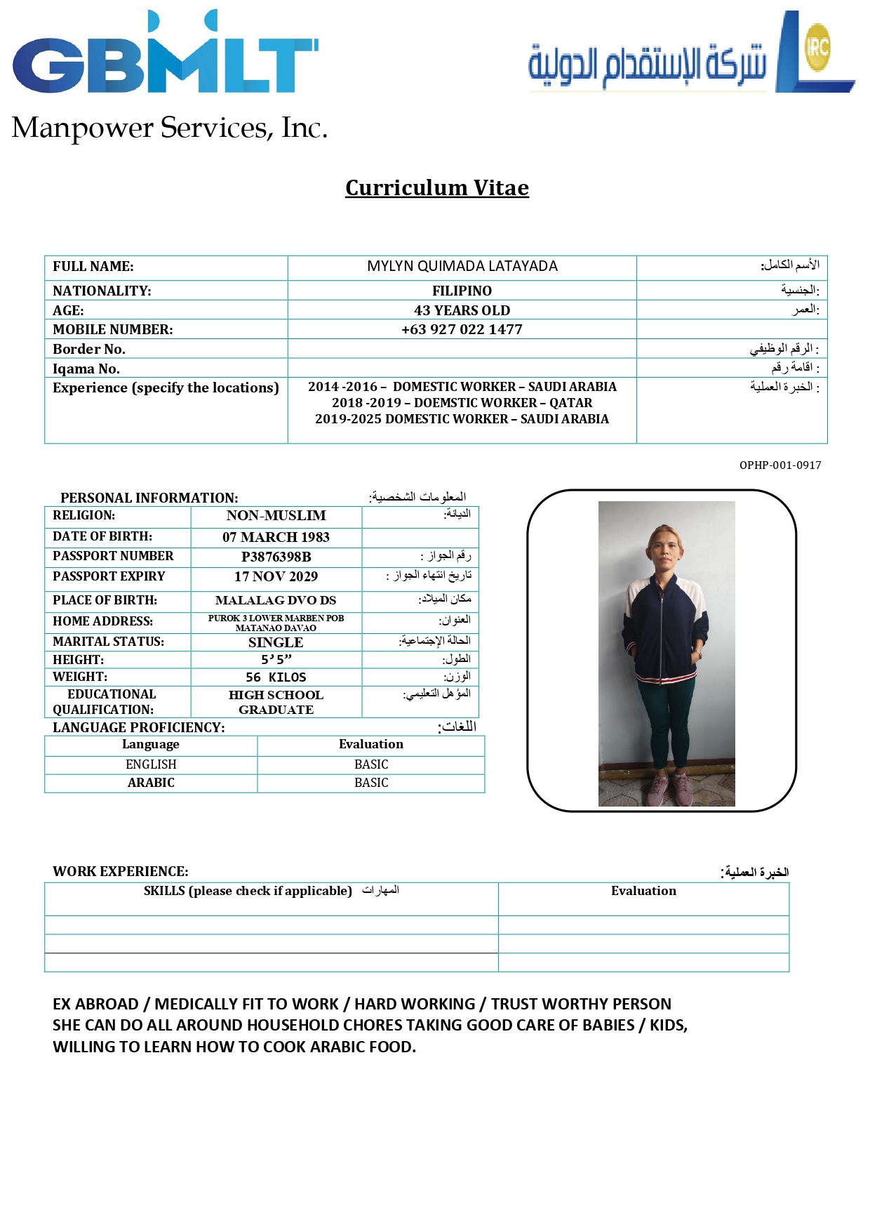عاملة منزلية